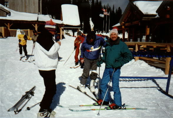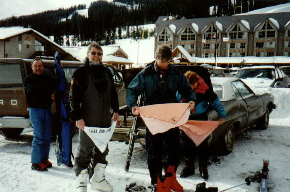 Walter, Dave, Niven and Cindy putting on their markers for identification purposes (Niven's idea)