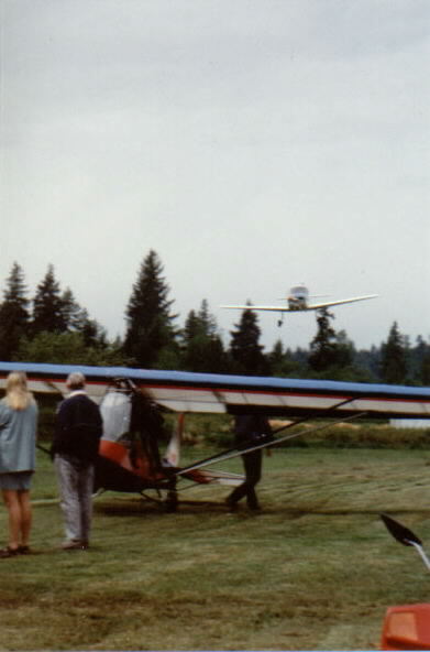 Roland Leroux of Sunfun preparing to takeoff with Bob Christen doing a low and over in his Gy20 Minicab